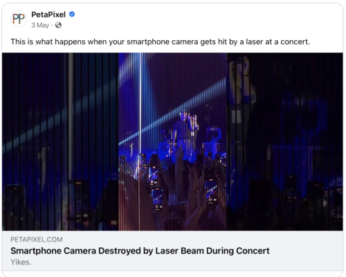 This is what happens when your camera gets hit by a laser beam at a concert !